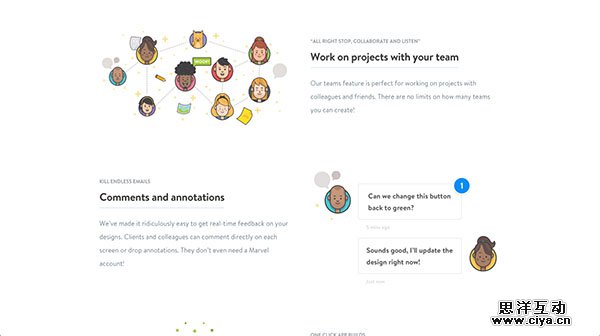 Innovation Project Canvas 的情况则稍有不同,设计师使用单纯的绿色来引导用户浏览,网页并未使用更多的色彩,但是童言非常优秀地完成了极具凝集力的色彩设计。