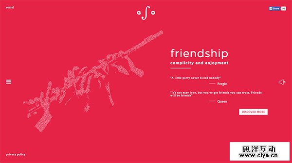 就以Gaga 交响乐的着陆页为例,当你打开网站的时候,鲜亮的粉色会让你眼前一亮。在“交响乐”的主题之下,用户对网站风格的预期是沉稳的色调,但是亮粉色则完全不再低调优雅之列,但是它符合网站中交响乐活力四射、乐趣无穷和创造力十足的特色,所以,此处的亮粉色符合逻辑,也为设计者“发声”了。