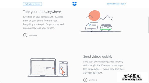 诸如著名的生产力工具Dropbox和Marvel也是这样来进行配色的,Dropbox尤为典型。两个工具都采用了蓝色作为主色调,同时还使用了绿色、橙色和红色来搭配,整个近似色和对比色都有了,几种色彩在一起会给人一种相互搭配良好的感觉。