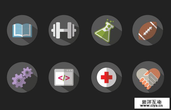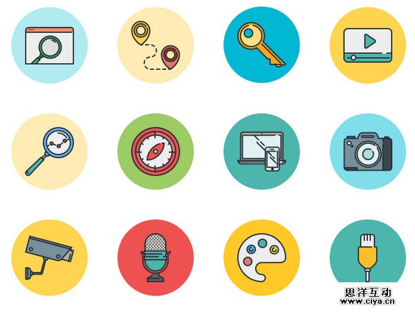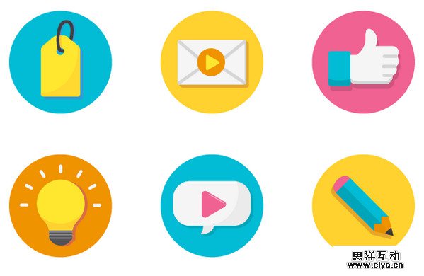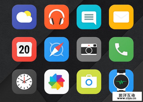Goodwin 在选取这组图标的主色调上非常用心,整个配色方案上选取了6种扁平化的色彩来搭配,配合小幅度的阴影构造立体感。白色背景的使用让整个设计拥有了开放的感觉。