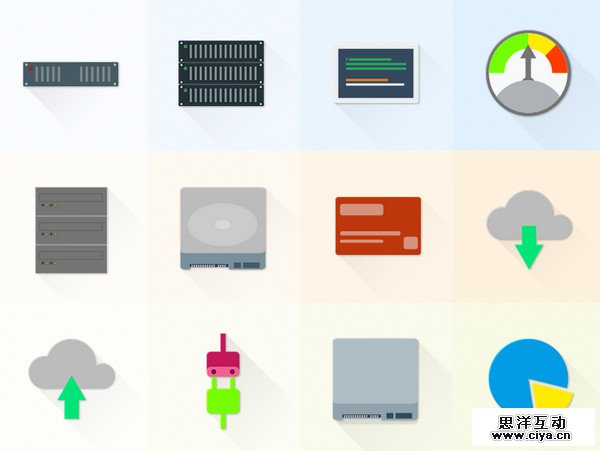 Oxygenna 这套网络服务器相关的图标设计相比于之前的图标设计更冰冷一些,色调以灰色为主,整体风格也贴合Material Design的要求,给人以务实的感觉。