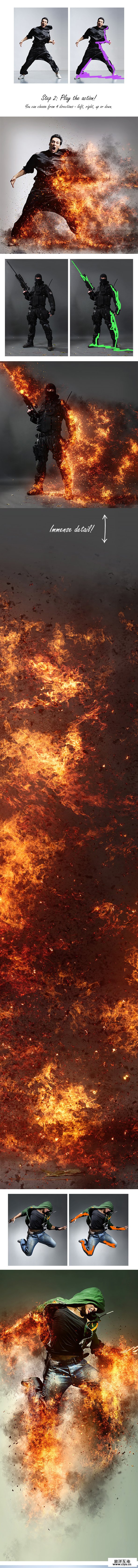今天@kangkang斯基 来分享一个超好用的PS动作,就算你是零基础,也可以一分钟做出酷炫的爆炸火焰效果,教程针对木有基础/贪图方便的新手,过程演示非常细致,动作也打包好了,来收。