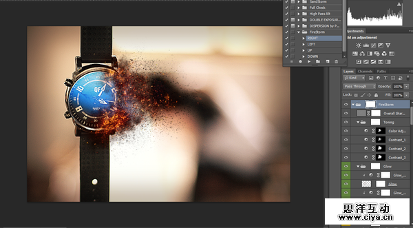 因为该图右边是留白部分,所以效果选择right,右,在这图层文件组里,还可以选择烟雾,火花及其效果,可做修改,更贴近现实。