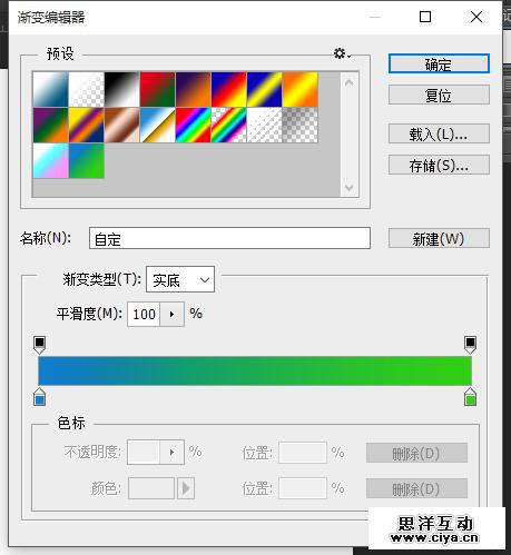 先确定主题,找一个比较符合主旨的颜色,然后进渐变选项,加入颜色: