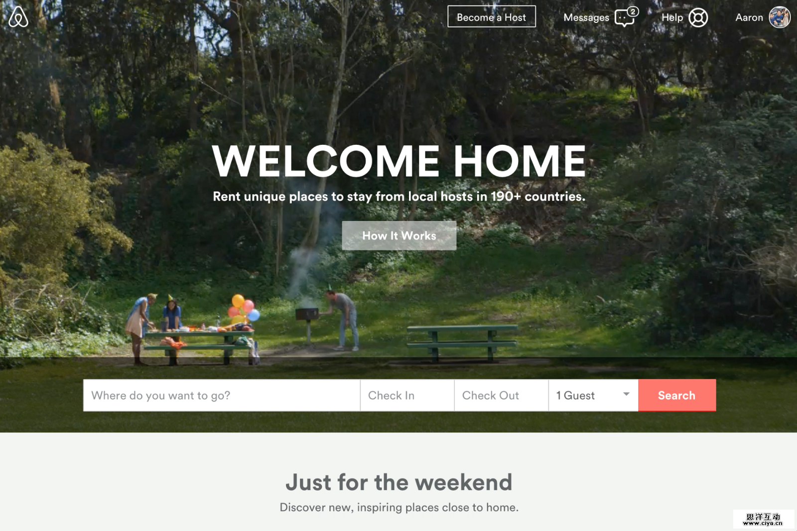 Airbnb 首页的美图和视频会给访客留下很深的第一印象,文案也很亲切、热情,让人忍不住去用~