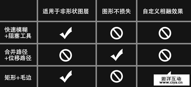 第三种方法[矩形+毛边],纯属手工打造相融效果,最大的好处就是相融的可控性大大增强!你可以打造千百种不同的相融效果。缺陷是面对大量物体时,这种手动的方法将很耗时间。