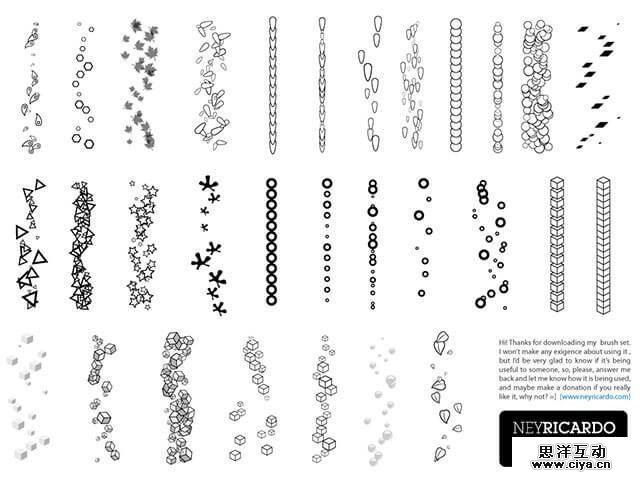 以三角形、正文形为元素的几何风格笔刷,看下面效果图出来的线条效果真不错哦。