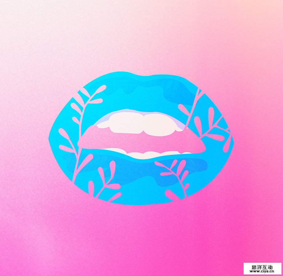 如上图中在大量的烟蓝色背景上,使用另一种纯度和明度也较高的蓝色的同事,增加一种暖色强调的点睛色。即使蓝色本身容易变得平淡沉滞,也可以马上使画面鲜活生动起来。通常在蓝色做主色的画面中,红、橙、黄色等暖色系色彩作为点睛色可以使整个画面具有梦幻感。而此处略低的纯度也让画面多出几分温柔。