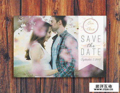 下面这是另外一种设计案例,他利用了不同的景深效果(将跟前儿的花瓣和背景进行了模糊),将视线聚集在整齐的构图上。这个结婚仪式的邀请函,能让人感到这是一对幸福的情侣。