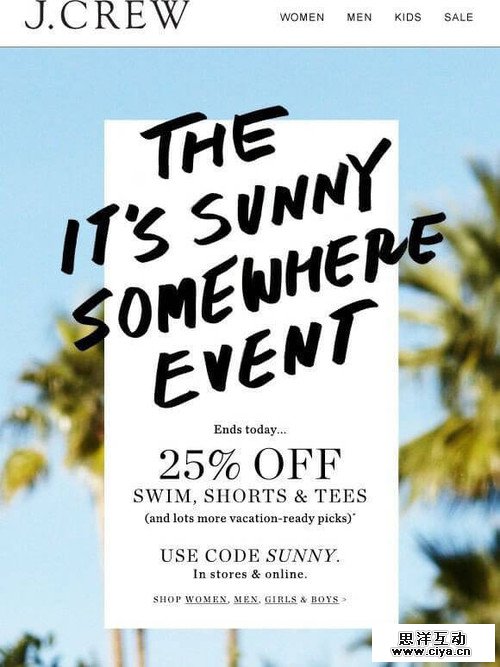 同样的下面这个设计案例,通过背景里模糊的棕榈树让人联想到一个美好的夏天,这样很好的与夏季促销的主题相匹配。