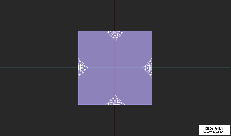 这时我们把小型的图案打开,放置于四边中点的位置。它的中心要刚好在画布四边的中点上。