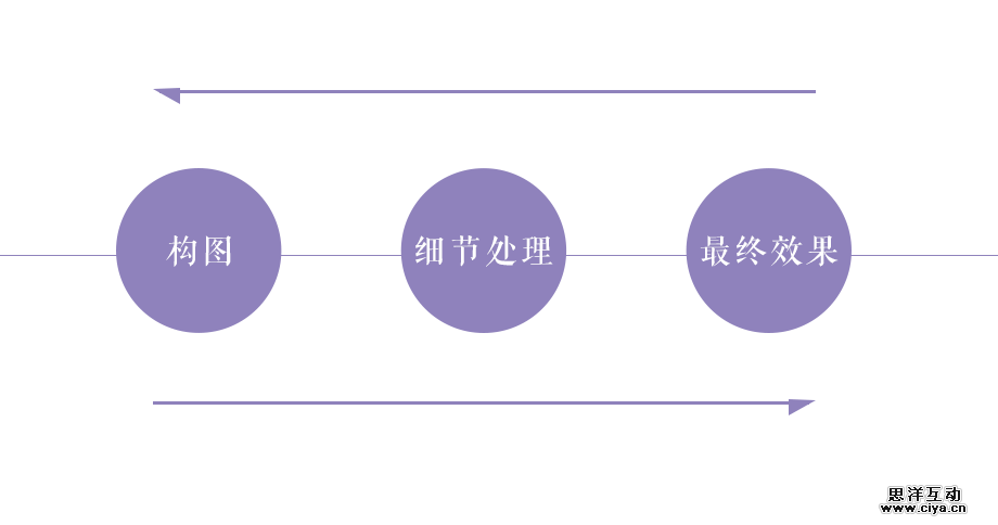 通常我把整个设计过程简化为“构图”“细节处理”和“最终效果”这三个大环节,其中“构图”部分包括了对整体版式风格的表现方式的选择,细节处理就包括了配色、字体设计、排版等,而最终效果包括最终的细部调整等。这三个环节是一环紧扣一环前后相继的,然而你也可以采用先通过想象最终效果,再来进行构图和细节处理的顺序。