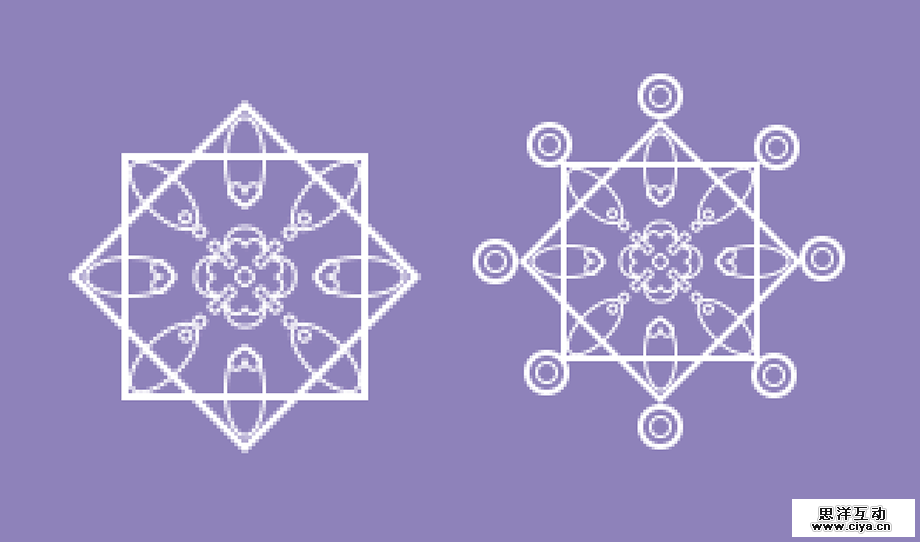 大型的图案当然是最为复杂的,但其实在演示了上面两个图案的绘制过程后,大家会发现其实这些图案都是由非常简单的图形所构成的。运用简单的几何图形就能创造出某种复杂美。