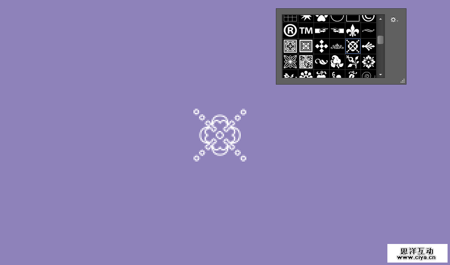 中型的图案比小型图案稍微复杂,因此我们用了PS自带的一个矢量图形作为中心。图形依然是保持空白填充,白色描边1px。