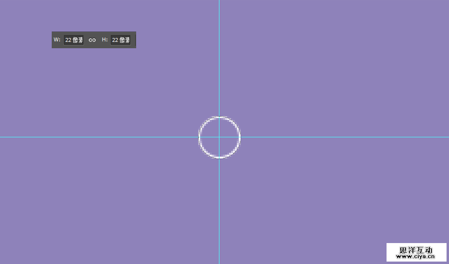 以中心点的位置为圆心,用椭圆工具画一个圆。这个圆保持填充为无,线条为1px,线条颜色为白色。