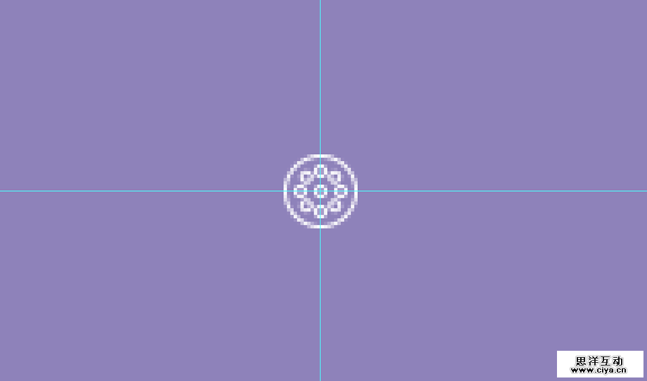先让我们绘制最小的图案。打开PS,新建一个250*250px的文档。打开文档的标尺,并运用辅助线,将其定位到中心的位置。然后将前景色设置为紫色,填充紫色背景。如下图所示。