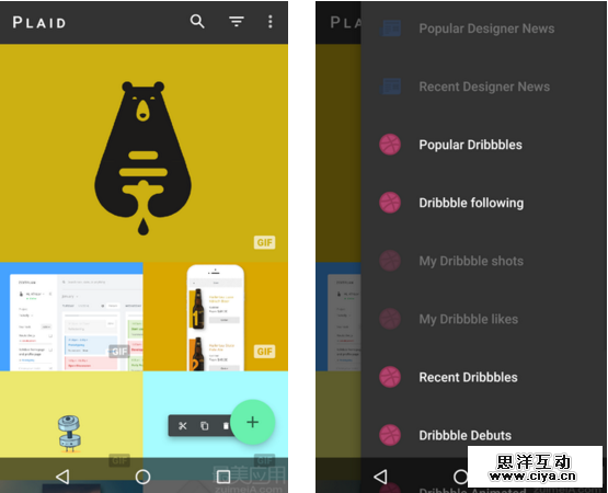 Dribbble 作为最著名的设计师社区之一自然不必多说了,设计师必上的网站。Plaid 是一款包含 Designer News、Dribbble 以及 ProductHunt 的内容聚合应用,你可以把完全当作一款 Dribble 第三方客户端使用,另外 Plaid 简洁的界面配合细腻的动效设计一定会令你爱不释手。