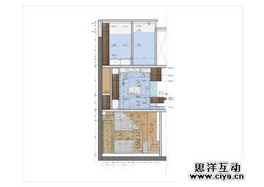 为减缓上下楼的压力,一层台阶下方设置多个不同收纳空间,剩余空间置入了厨房