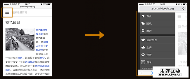 下面是一些处理响应式导航比较流行的技巧,由于下述几种导航方式还没有约定俗成的叫法,所以大家可以结合案例网站来理解他的实际用法: