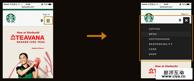 ·容易辨认——选择菜单贴有明确的标签,显示“导航”或“菜单”,这非常容易辨认。