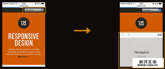 ·使用本地控件——每个移动浏览器将会用各自的方式处理选择菜单。触摸设备将会提升导航列表的触摸友好度。