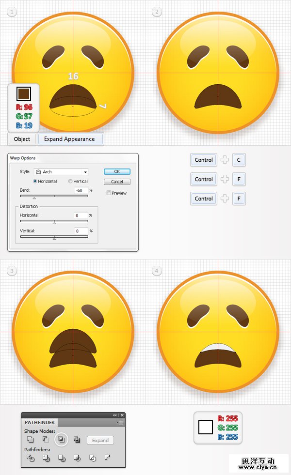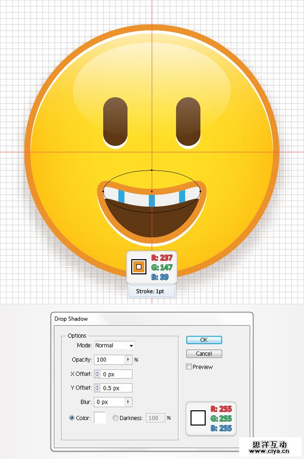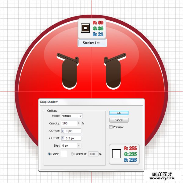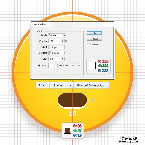 对齐网格会减轻你的工作。 填满所有R = 96,G = 57,B = 19,然后去影响>风格化>圆角。 输入2 px半径,单击确定,然后去>风格化>阴影效果。 输入数据所示,然后单击确定。
