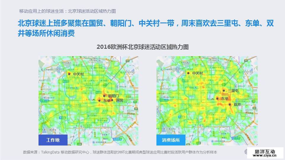 北京球迷上班多聚集在国贸、朝阳门、中关村一带,周末喜欢去三里屯、东单、双井等场所休闲消费。