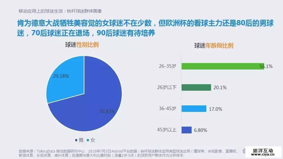 肯为德意大战牺牲美容觉的女球迷不在少数,但欧洲杯的看球主力还是80后的男球迷,70后球迷正在退场,90后球迷有待培养。
