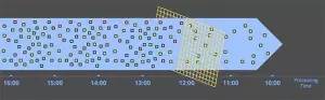 这种方式下,系统本质上是把进来的数据进行缓存,达到一定的处理时间窗口再对缓存的数据进行处理。例如,在一个5分钟的固定窗口里,系统会按自己的系统时间缓存5分钟内的数据,然后把这5分钟内的数据视为一片,交由流程的下一步做处理。