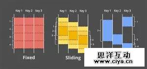 2.滑动窗口(Sliding windows):滑动窗口是固定窗口的一个更一般化的形式。一般会定义两个量,即窗口大小(时间长短)和滑动时间。如果滑动时间比窗口要小,则窗口会重叠;如果相等,这就是固定窗口;如果滑动时间比窗口大,就产生了一种特殊的数据采样,也就是按时间只看数据集里的一部分子集的数据。类似于固定窗口,滑动窗口一般也是对齐的。出于性能考虑也会在某些情况下是非对齐的。需要注意的是,图8里为了能表明滑动的性质而没有把每个窗口对应到所有的键。实际情况里是都要对应到的。