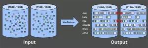 处理有穷数据是很简单直接的,相信大家都比较的熟悉了。如下图(图2)所示,我们会先对左边非结构化的据进行操作。使用某种分析引擎(通常是批处理类型的,但一个设计良好的流计算引擎也能做的一样好),比如MapReduce,对这些数据做运算。最后得到图右边所示的有规则的结构化数据,并获得其内在的价值。