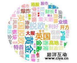 其中,从凤凰新闻的标题词云可以看出,“沪指”、“资金”、“港股”、“利好”、“黄金”等金融类词汇出现频次较高,体现出凤凰新闻对“英国脱欧”事件的经济影响的关注(图7)。