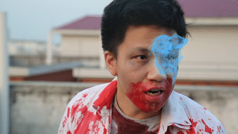 一点跟踪:只跟踪一个点区域,从而得到跟踪区域的位置移动数据。下图的中枪特效就是跟踪衣服上的点,然后给血赋予上点的位 置数据。注意:它只能跟踪到位置的数据。