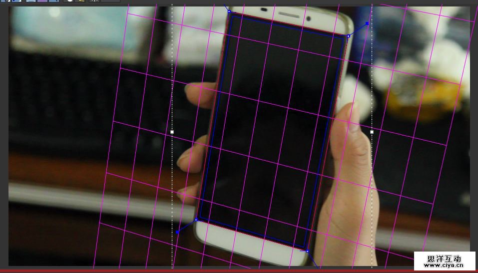 只需在Mocha里框画出要跟踪的手机显示器面,然后再确定显示器面的方向,点击跟踪就可以得到显示器的数据了,下面就是面跟踪的最终效果