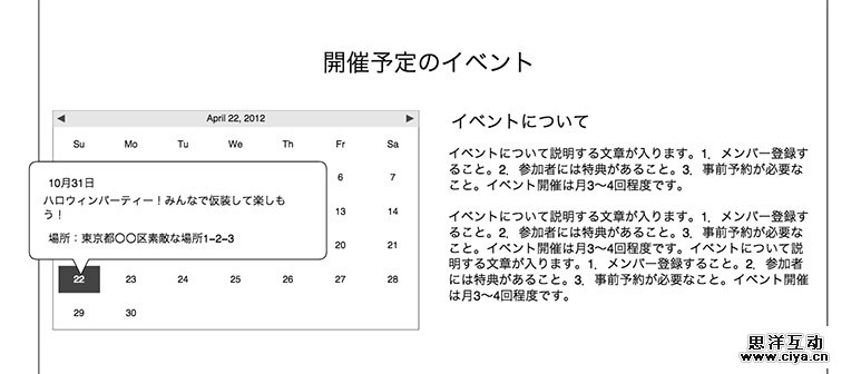 也有其他的,能在网站上看到活动提醒的日历。日历想要便利,需要大做文章。这个网站由于是一个月举办3到4次活动,如果反过来来看日历,在设计的时候会浪费掉一定的空间。