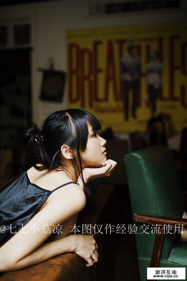 如上两图所示。男友们依然可以采用AV模式,光圈不用放的很大,2.2到2.8都是不错的选择。如果窗外是阴天,女友可以离窗户近点,如图1,如果窗外太阳很大,那女友可以适当远离窗外一些,如图2。如果怕脸太暗,可以把头稍稍侧转,如上图所示,脸部的曝光会舒服很多。