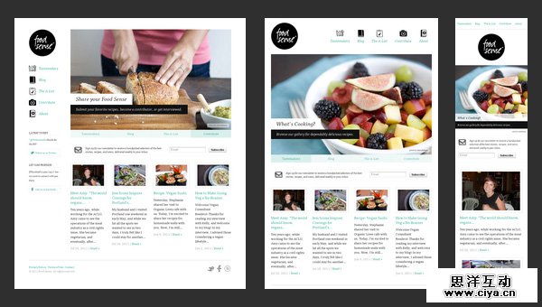 这是一个普通的左侧博客风格杂志布局加上众多美味图片充斥的一块一块的布局的网站,这个网站展示了它是如何转化和适应不同分辨率的,并让用户看起来这些网站是同一个网站。