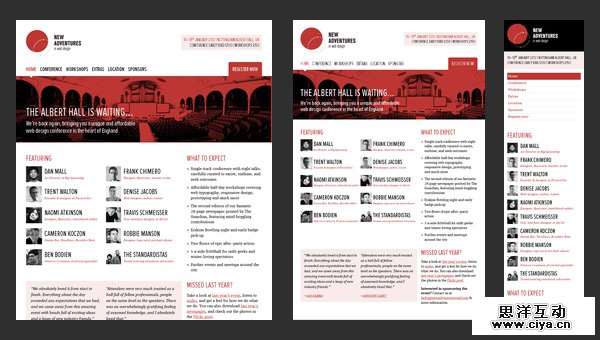 虽然网页很符合响应式规律,但是乍一看似乎网站有一点复杂,混乱的外表让人觉得难以处理,实际上解决方案非常原始。设计师已经明智地把所有信息分割成了3列,并根据屏幕的大小,而让数量增减,当屏幕变小时,布局从3列慢慢地递减至2列直到只能显示一列为止,这样就能有秩序的展现你的所有信息。