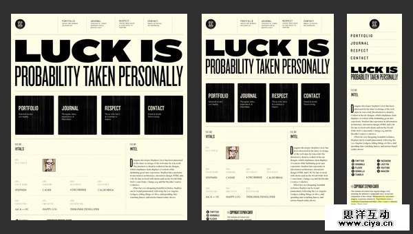 这是一个干净的有组织的网站,由一个灵活的横向色块条布局构成。这里也是通过强烈的视觉对比区分信息,从而完成响应式结构。