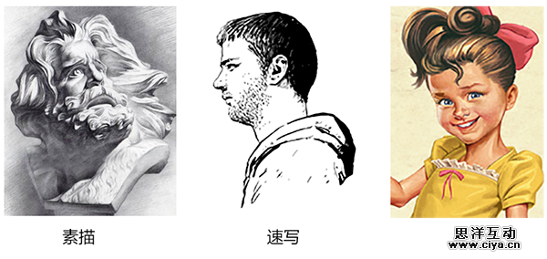 在过去一段时间内,扁平化风格比较流行。图标设计主要以线性和色块为主。很多人质疑还有没有必要去练习写实图标,我的意见是需要的。国内的设计专业都有基础课:素描、速写、色彩。这是绘画入门的三大基础课题,(如图1-3所示)我们学习的图形设计过程也是以这个顺序逐步递进的。