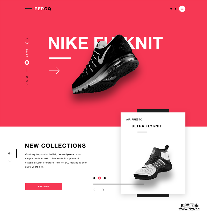 耐克和小牛电动车的页面设计的颜色选择都是使用了这个方法,并且小牛为是让画面不单调,背景使用了素色黑白灰的一些图形元素,这样既让画面丰富起来又不会使颜色过多而显得杂乱。