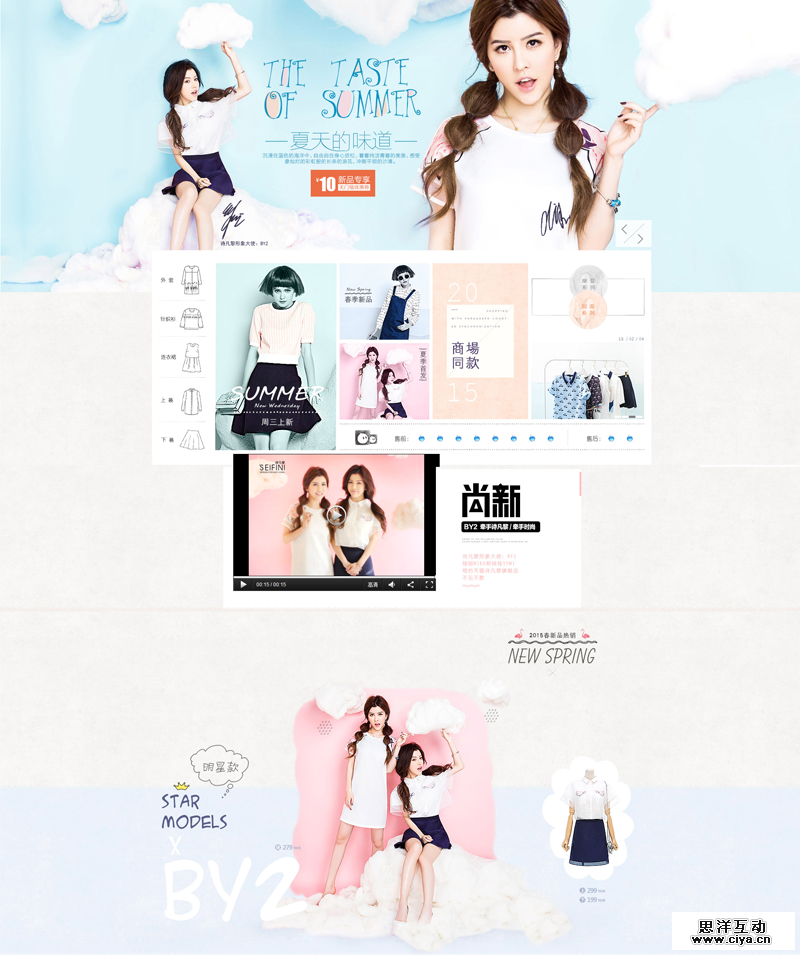 这里我们先不说这个专题设计的构图、颜色,只说一下文字,除了9.9元比较明显的突出了卖点以外,其他基本都非常杂乱,字体的字形被改的面目全非。因此提醒大家,在没有能力把握字形的时候千万不要自行修改甚至设计字体。