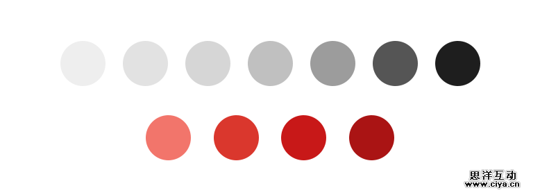 这样我们很容易的就能看出来颜色的层次,灰色系有7个层次,而红色系有4个层次,正因为这样的层次让整个设计显得非常丰富,并且有立体感而不至于太“平”。