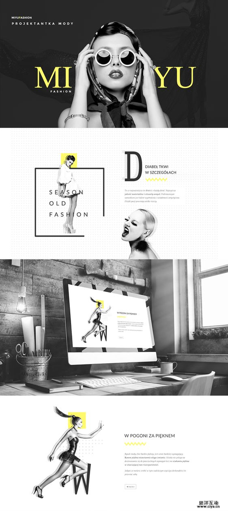 通过上面的案例我们发现,这些设计师所用的颜色都不会超过3种,而做为极简设计有时候只使用2种颜色,甚至只用黑白灰的变化来进行设计。