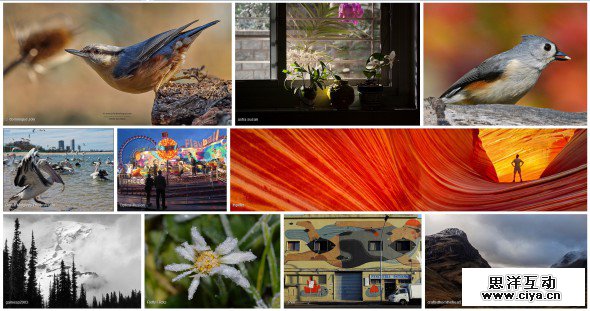 这个布局的优势显而易见:整齐又多变,规则又繁杂,用最纯粹的方式展现图片的魅力。