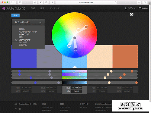 Photoshop上也可以使用的“Adobe Color主题”,即使在网页上也可以使用。同样的使用方法,可以借助Adobe ID同步色板。