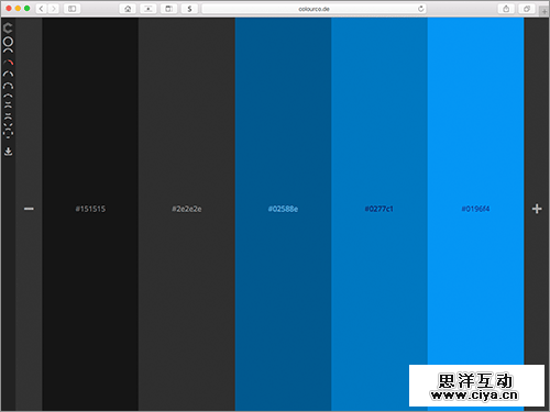 可以编辑或者尝试Pantone上的各种色彩组合与渐变等。登录后选择的颜色显示在右侧的色板,中间的色板可以比较颜色的组合,或者进行颜色的混合。