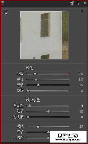 继续下拉Lightroom调整菜单,在保持软件默认值的同时明亮度参数进行了调整,为的是整体先来一点点降噪的效果.
