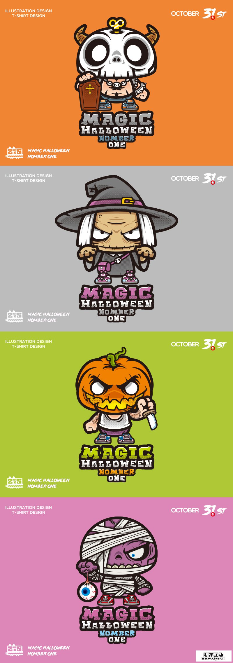 这回的插画内容结合了很多万圣节常出现的妖怪,还有自己比较喜欢的怪物。