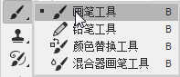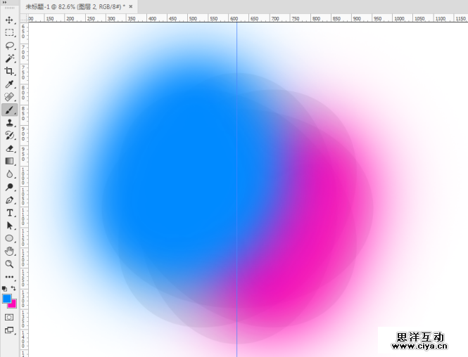使用工具栏中的【画笔工具】绘制颜色。在绘制的前可以调整画笔的大小和颜色,双击工具栏中的颜色进行设定前景色和背景色。通过使用【画笔工具】将颜色绘制成从蓝色到桃红色的渐变效果。